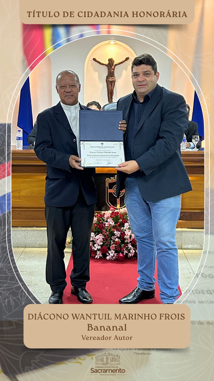 – Título de Cidadania Honorária: Diácono Wantuil Marinho Frois