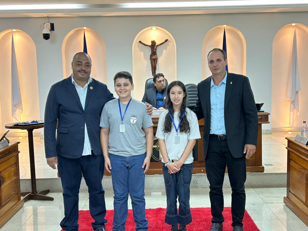 Durante a 18ª Reunião Ordinária do 2º Período de 2025, em 1º de dezembro, o Poder Legislativo entregou a premiação Aluno Nota Dez, instituída pela Resolução nº 384/2023. A iniciativa reconhece estudantes do Ensino Fundamental e Médio que alcançaram as maiores médias em suas escolas ao longo do ano letivo.