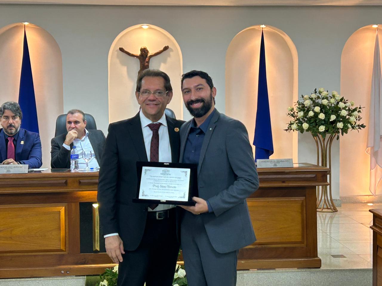 Durante a solenidade, os vereadores entregaram as homenagens aos profissionais indicados, reforçando o reconhecimento da Câmara Municipal ao trabalho fundamental realizado por educadores e servidores públicos para o desenvolvimento e bem-estar da comunidade sacramentana.