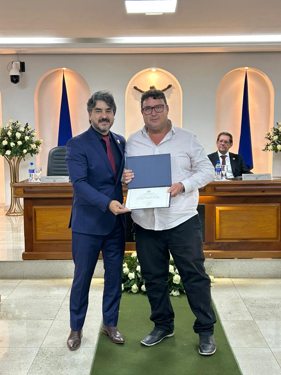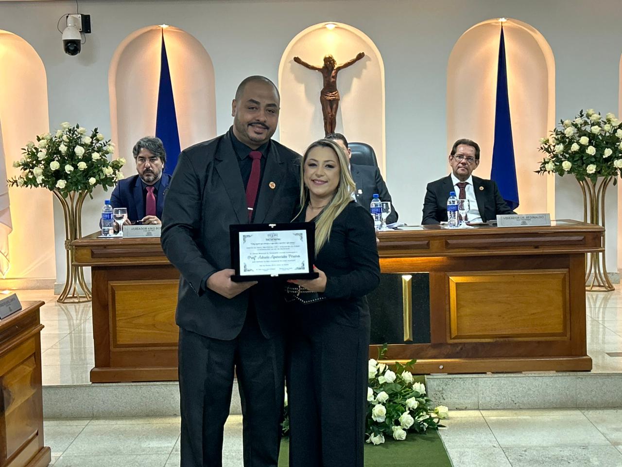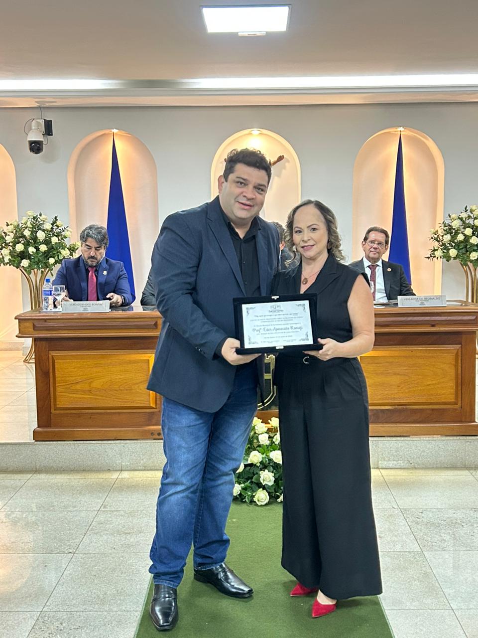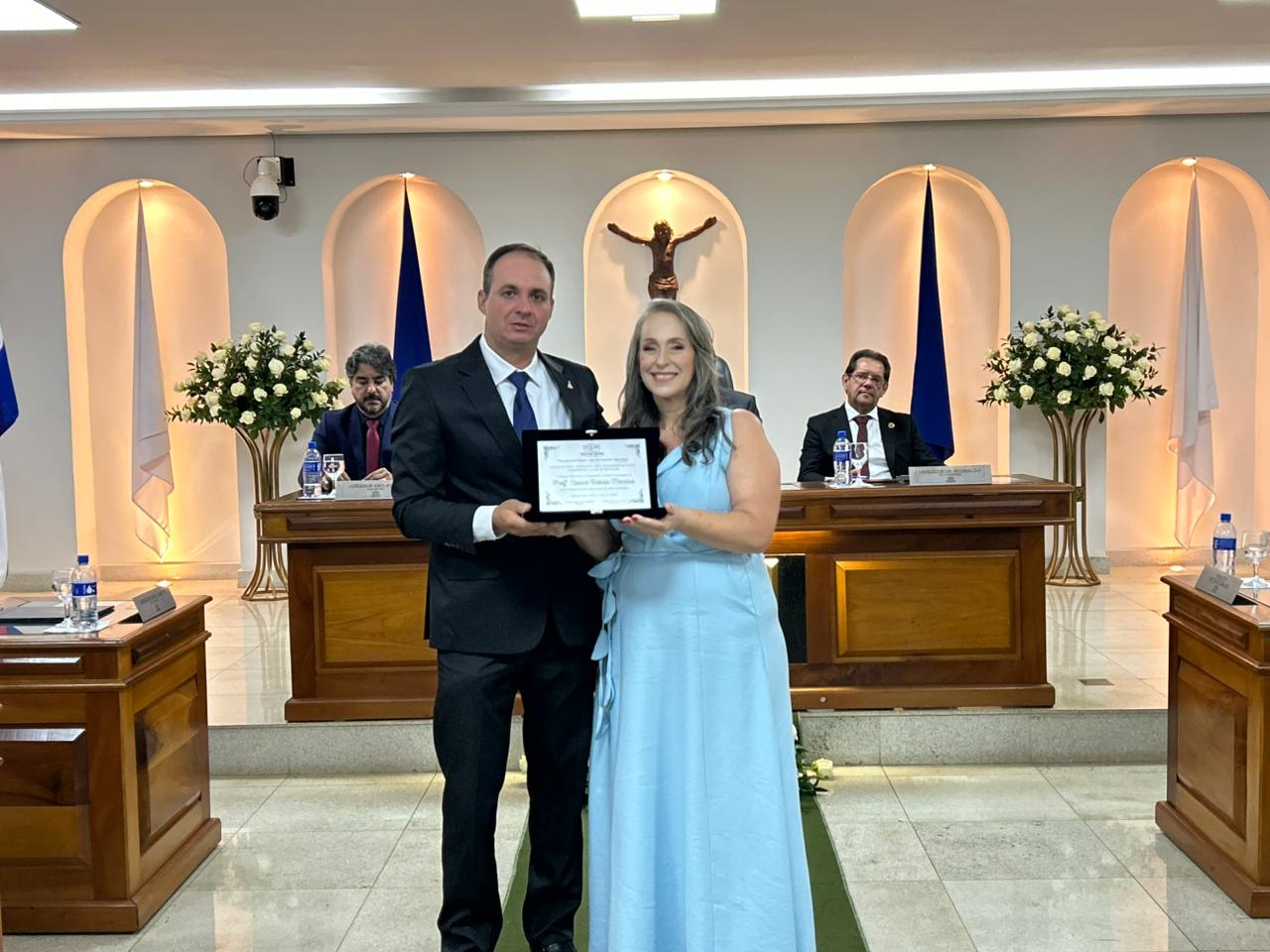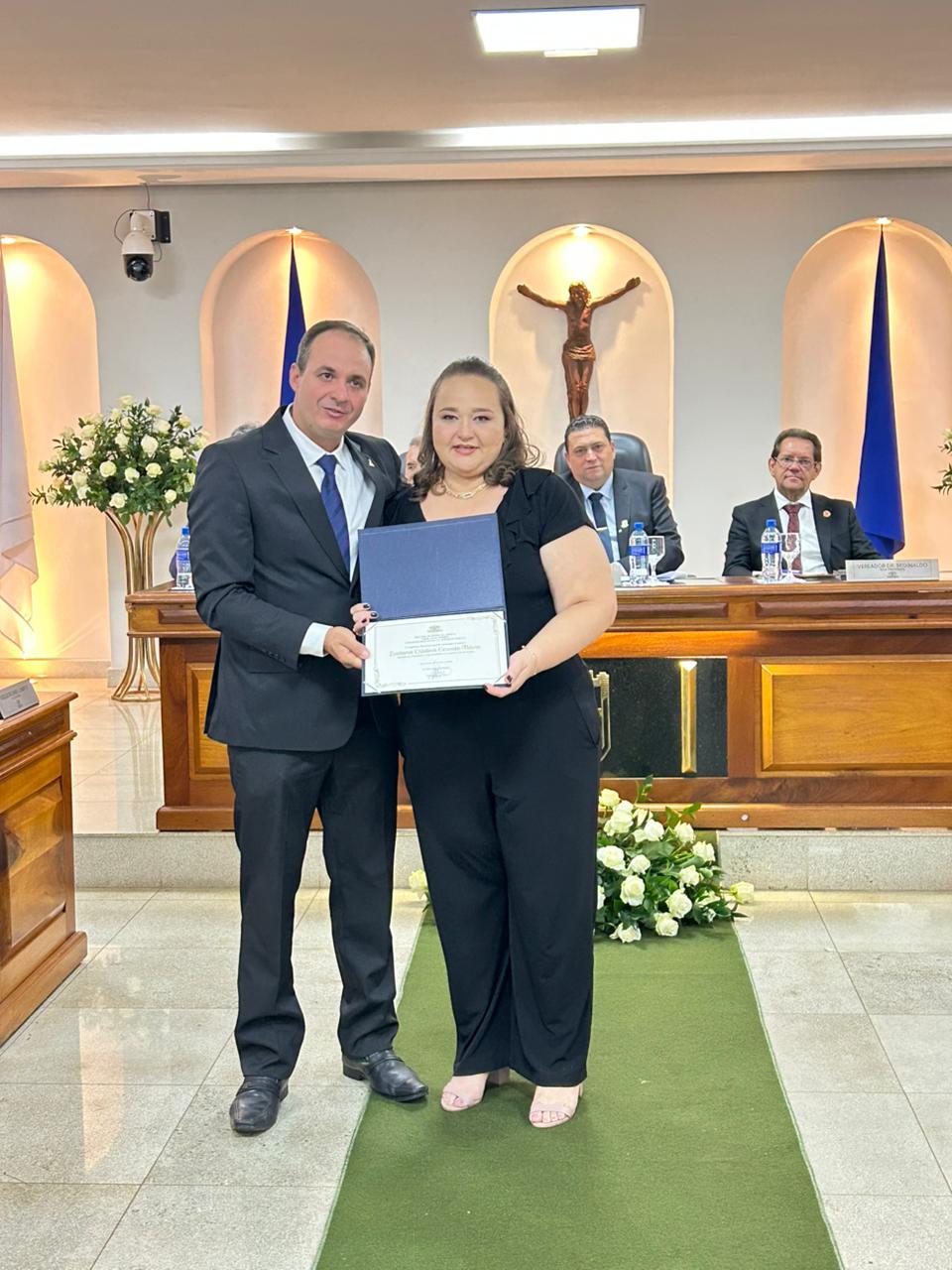 Na noite de quinta-feira (23), a Câmara Municipal de Sacramento realizou uma Sessão Solene para a entrega das honrarias Cartão de Prata de Honra ao Mérito ‘Cerly Auxiliadora da Cunha’, em comemoração ao Dia do Professor, e Diploma de Honra ao Mérito ‘Vera Lúcia Gomide’, em homenagem ao Dia do Servidor Público.