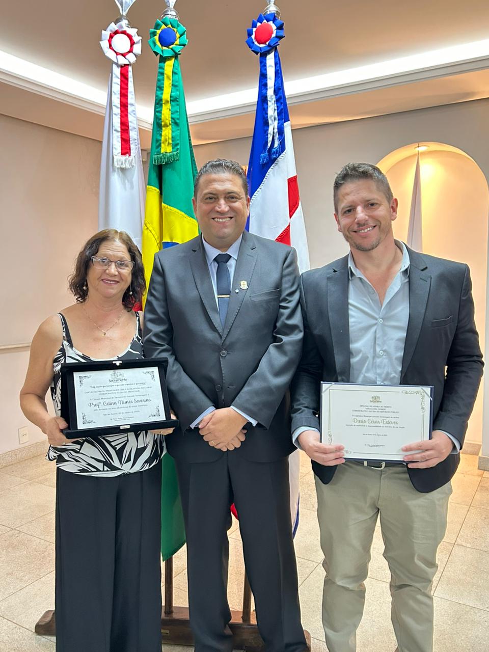 - Carlos Bananal: professora Ester Aparecida Ranuzi e servidor Delcides Tiago Filho